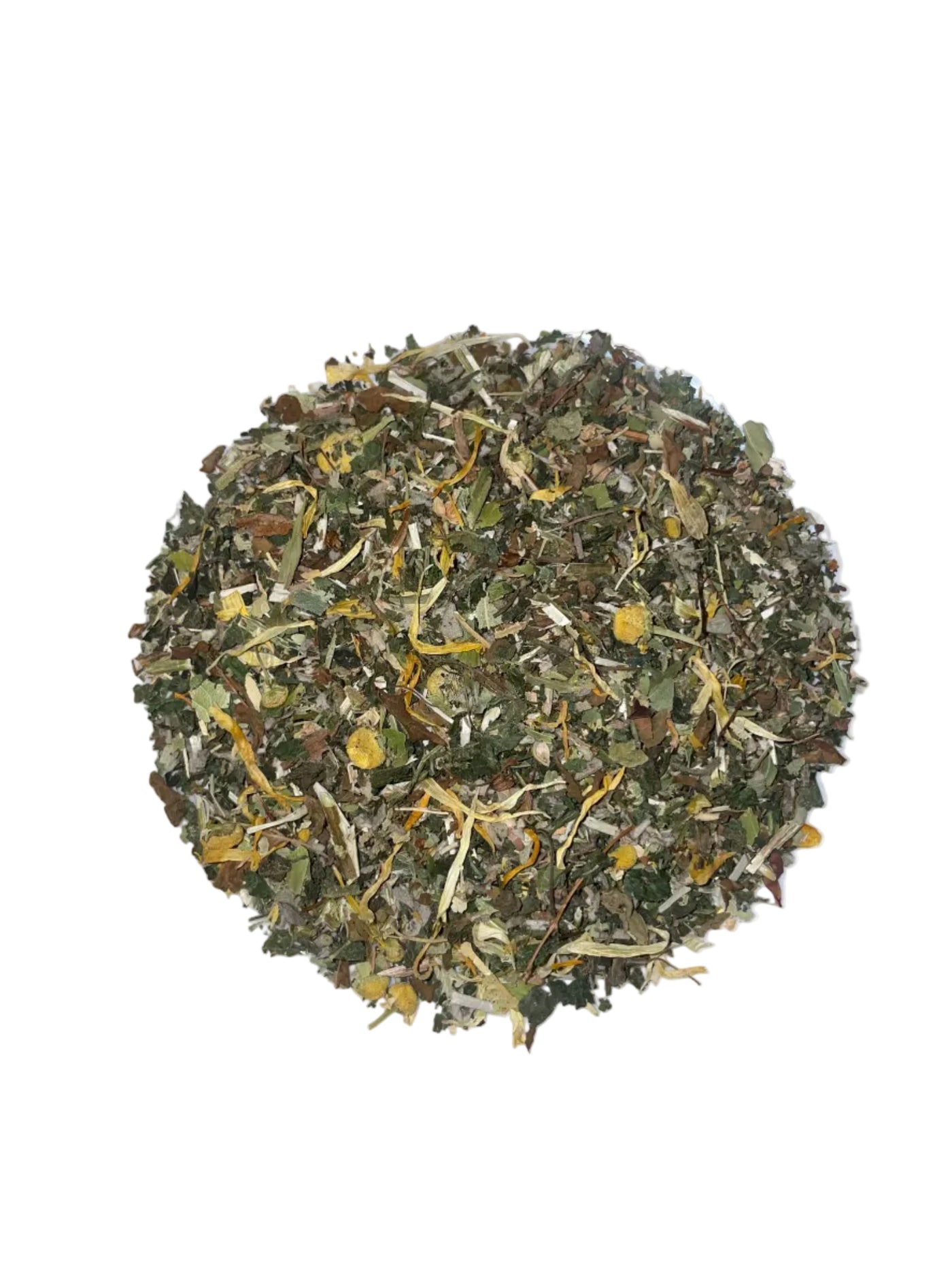 Inhoud: 50 gram (Salie, Lindebloesem, Tulsi, Cichoreikruid, GuldenRoede, Kamille en Goudsbloem)